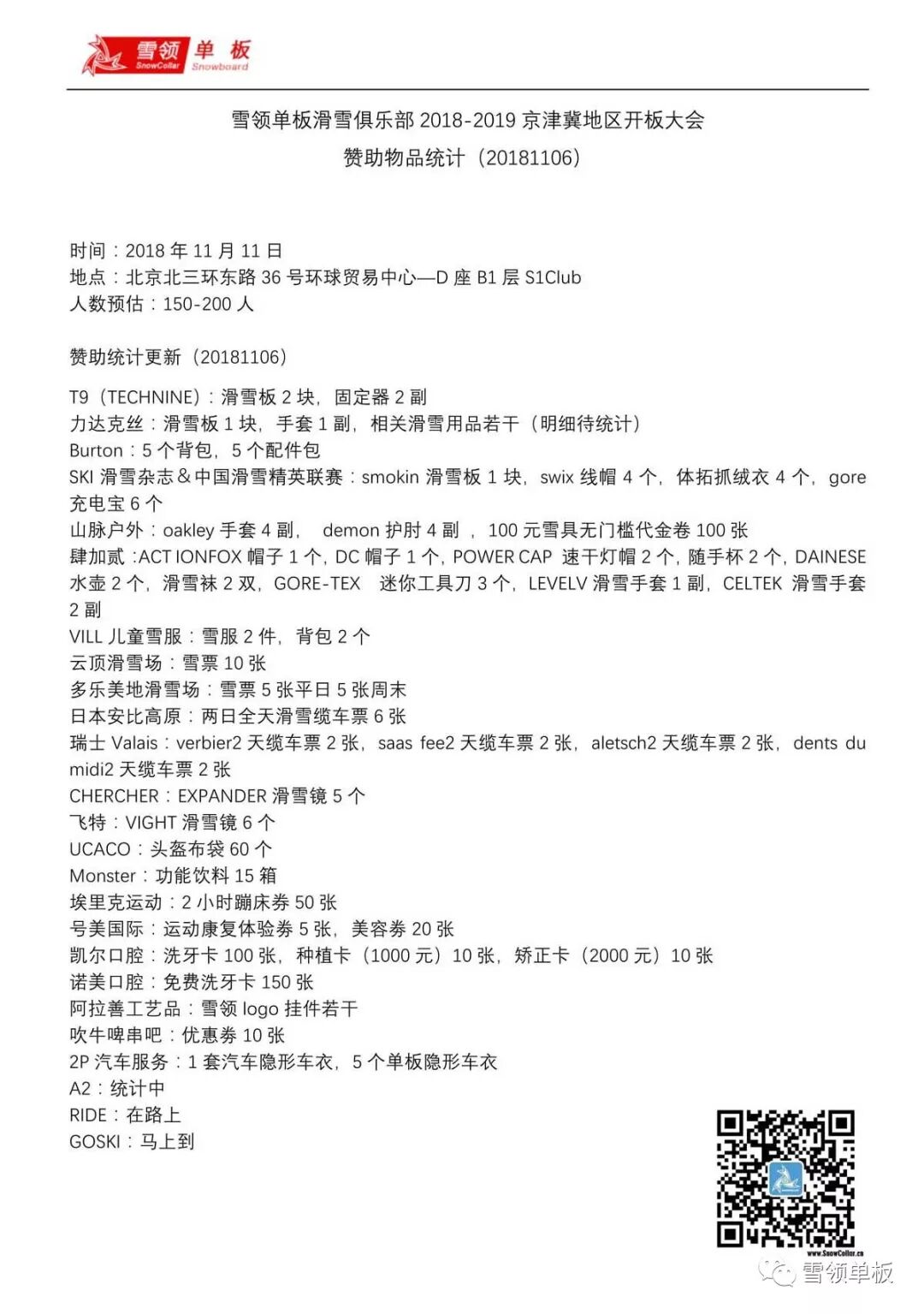 2、本抽奖仅对报名参加11.11当天的开板大会的雪友有效,线上抽奖,活动当天线下兑奖。还没有报名的请火速点击底部阅读原文。