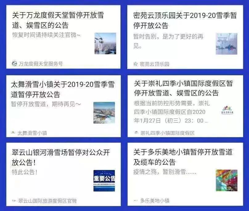 据万龙滑雪场品牌中心销售主管市场部王聪佳回忆,“25、26号陆续看到北京及其他地方雪场关闭消息,我们是27号晚上,接到政府通知,然后所有雪场依次发通知停业的。”