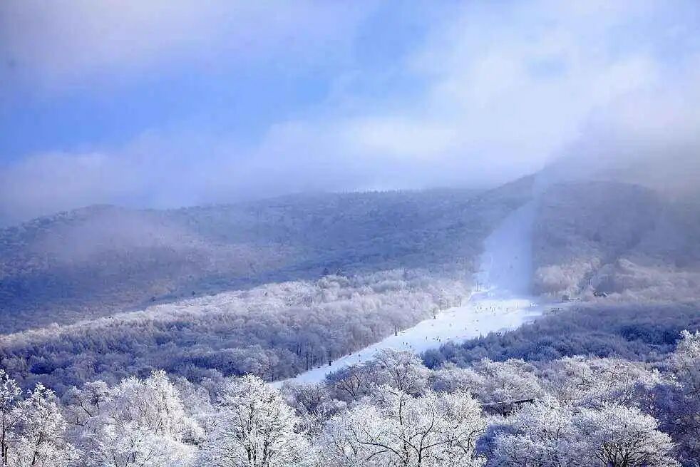 不过北大湖的雪道坡度普遍比较陡,再加上很多雪道非常窄,对于初学者来说不太友好。不过登上山顶,东北特有有的雾凇、银装素裹的风光、峰峦起伏的雪山,心旷神怡的享受再加上滑雪的紧张和刺激,令旅途格外难忘。