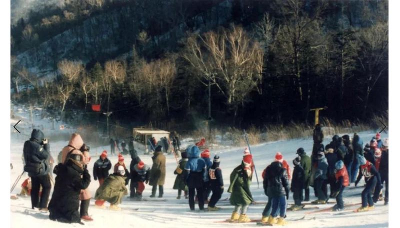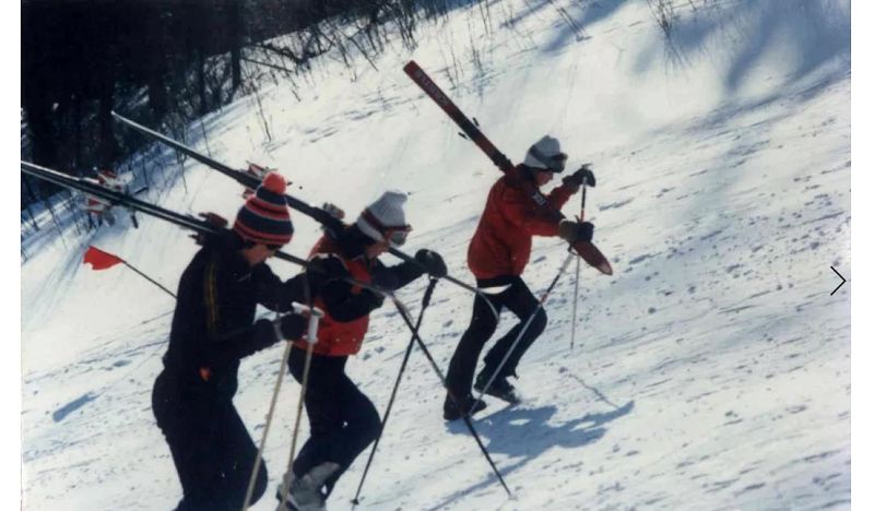 1976年,国家滑雪训练的运动员来到锅盔山上训练,环境非常艰苦,没水没电没取暖。运动员训练穿着普通的棉衣棉裤,扛着老旧的古董雪板,一趟趟往山上爬,然后从山沟里滑下来。