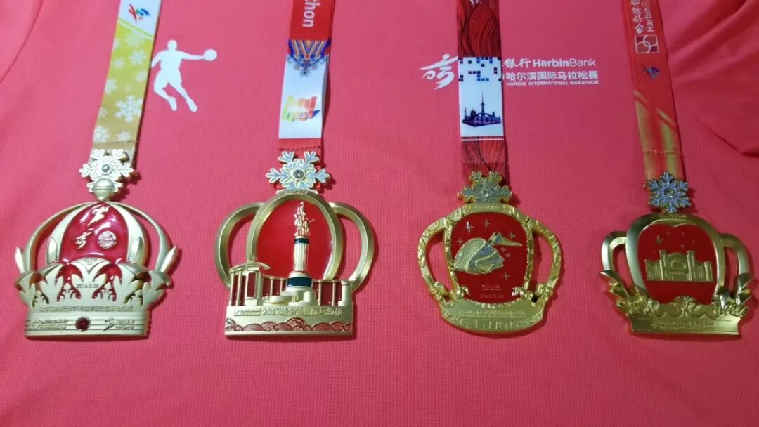 图说:王云雷参加马拉松比赛获得的部分奖牌。