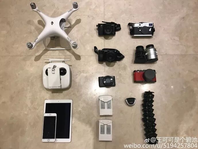 除了全套的滑雪装备,还配上了无人机,徕卡豪华照相机等专业拍照设备。