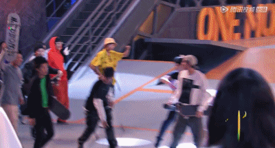 节目开场,率先出场的三位明星,基本都是摔着出来的。