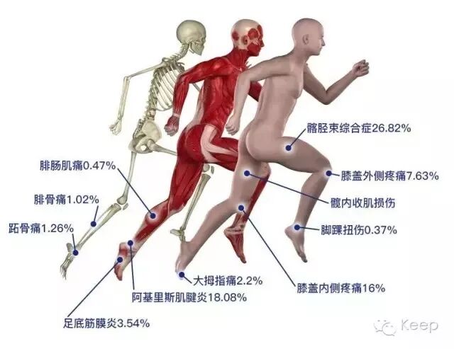 欧洲权威机构RSLab对上万名跑步爱好者进行统计,总结出跑步最容易引发的10种常见伤病,其中最为常见的就是膝盖和脚部损伤。