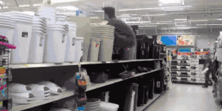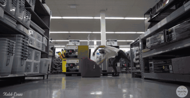但和传统的街头跑酷不同,超市里的奔跑不在于高度,他们更看重动作的深度。