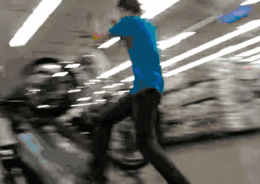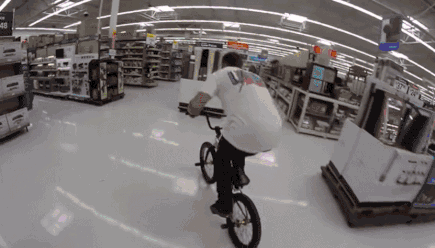 BMX爱好者尝试把小轮车骑进了沃尔玛,员工并没有阻拦。