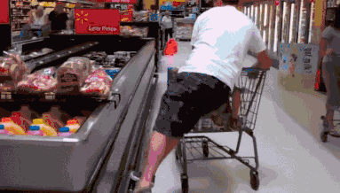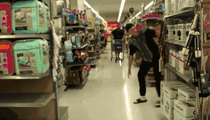 在沃尔玛里跑酷的人并不在少数,油管上相关视频有上百万播放量。