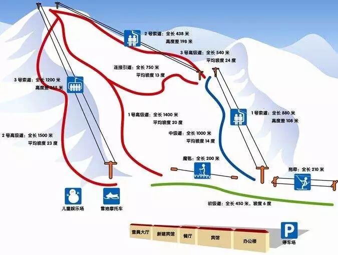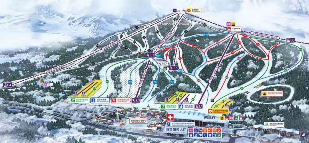 高级雪道22条、中级雪道6条、初级雪道4条(涵盖特色蘑菇道8条及各类趣味雪道)每条雪道都是以龙命名