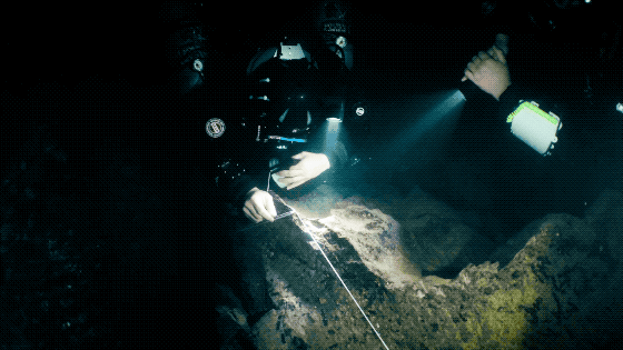 周芳说:“大概进入侧洞一、两米的位置,我踢了两下脚蹼,整个洞沙尘弥漫,能见度瞬间为零。当时我就觉得自己跟进了棺材一样,已经抱着必死的心了。”