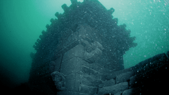 千岛湖水下的节孝坊,距今300多年。是中国目前水下唯一一座没有坍塌的、保存最完整的砖墙结构的牌坊,这次被成功拍摄了下来。