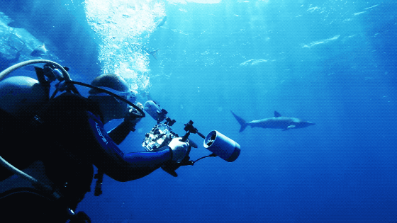 因为想要了解水下世界,完成水下拍摄,她开始考潜水证。从此之后,她每年中基本有半年的时间,都在世界各地潜水。