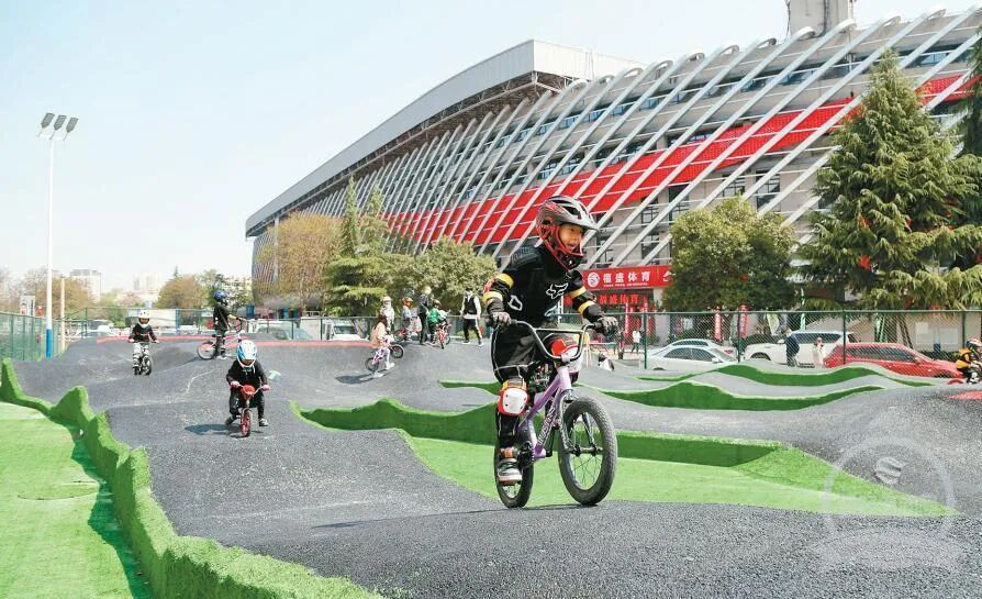 泵道场地也称“波浪道”,是一种浓缩多种车型的训练和竞赛场地,可满足山地越野车、山地速降车、BMX小轮车、儿童滑步车、轮滑、滑板等极限运动的基础训练。(西安新闻网)