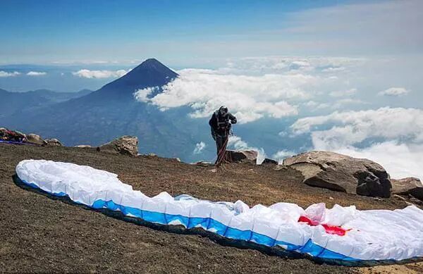 滑翔飞跃活火山, 和当年孙悟空筋斗云翻过火焰山有的一拼吗? 算了吧,西游记还是有点魔幻, 这个是赤裸裸的现实啊。