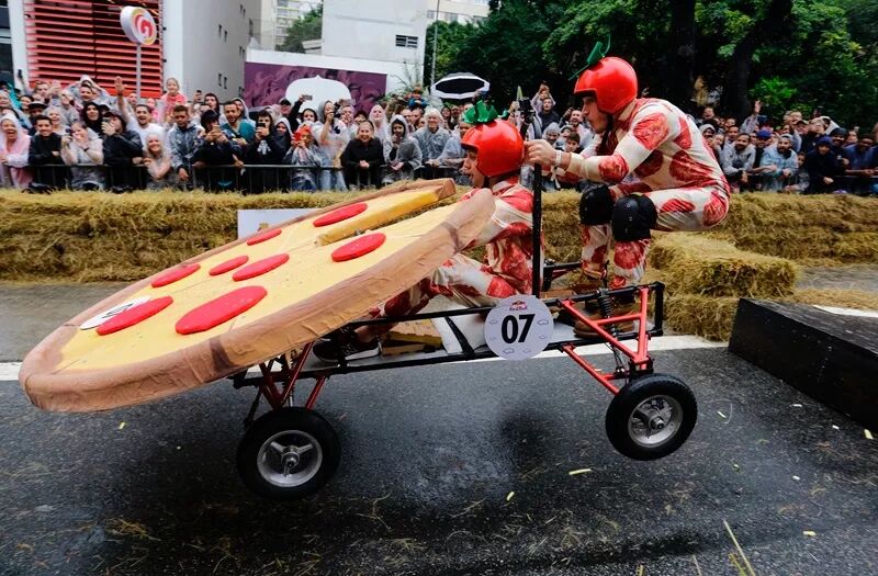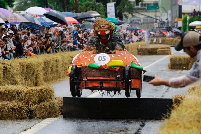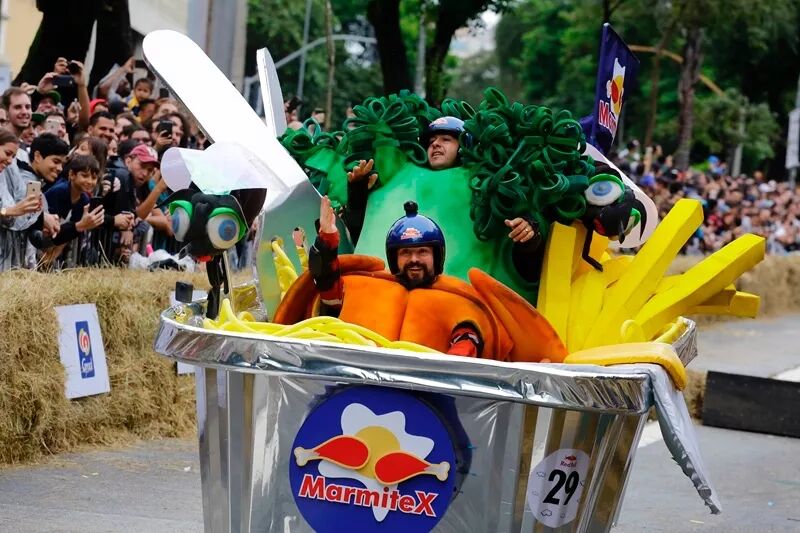 当地时间2019年4月14日,巴西圣保罗,举办了一场红牛肥皂盒汽车大赛。