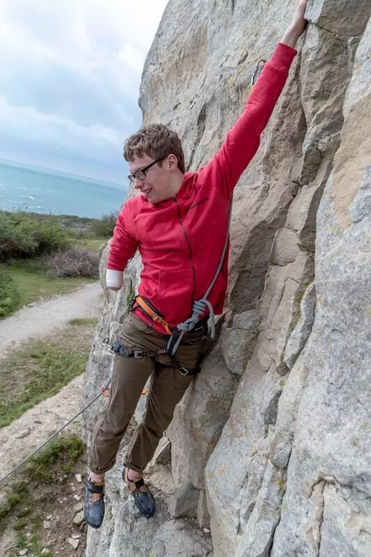 环球网4月18日报道,英国萨里郡有位18岁的小哥Matthew Philips,天生没有右手,但这并没有阻挠他成为一名攀岩选手,而且,他还成为了英国顶级的残疾人攀岩选手。