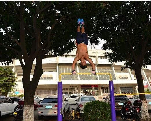 在单杠上仅靠双臂带动身体旋转,你能做几个?在合肥,70岁的老人朱先胜能一口气做上五六十个,令人惊叹。