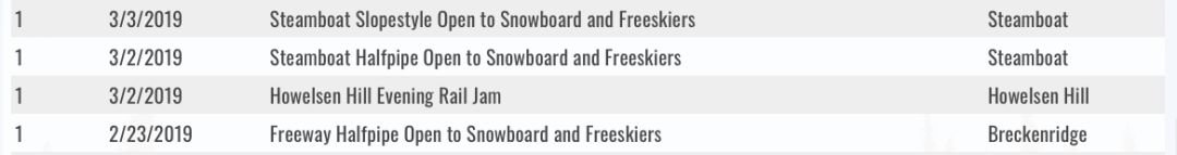 之后的坡面障碍技巧比赛,Patti依旧毫无悬念的夺得冠军。自此,Patti已经结束了本雪季所有比赛,并完成了毫不费力包揽全部冠军的壮举。