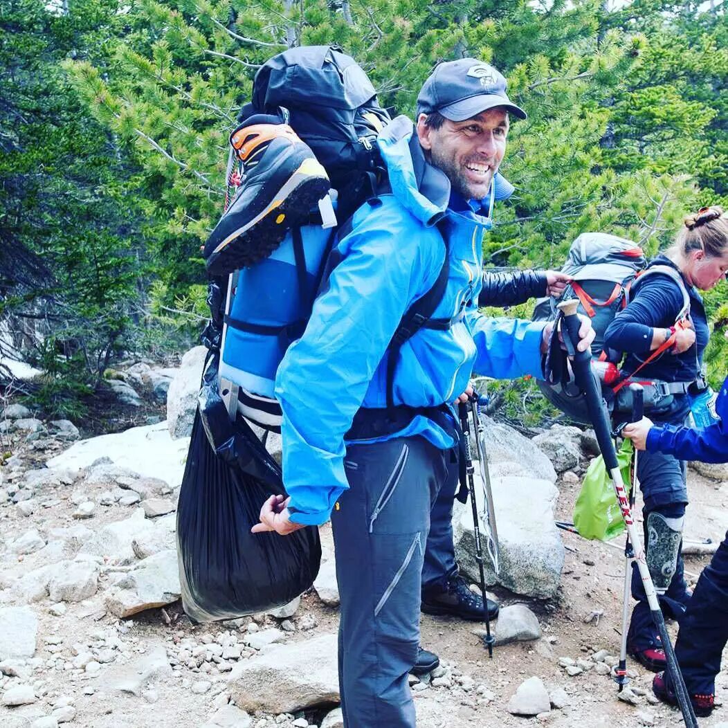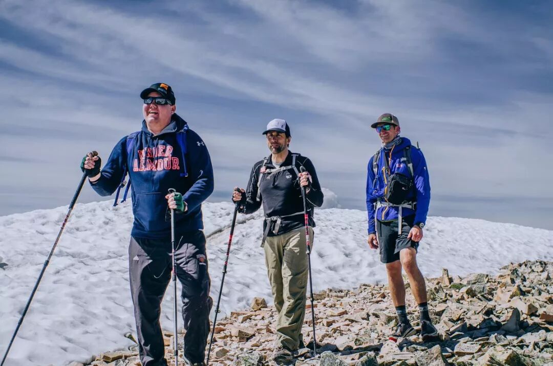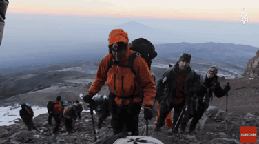 登山前,队友会用Eric的手杖指示一下山顶在哪