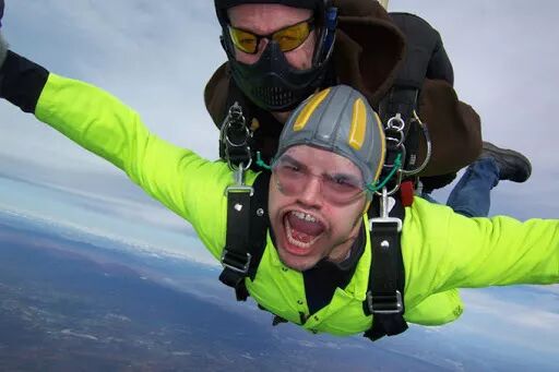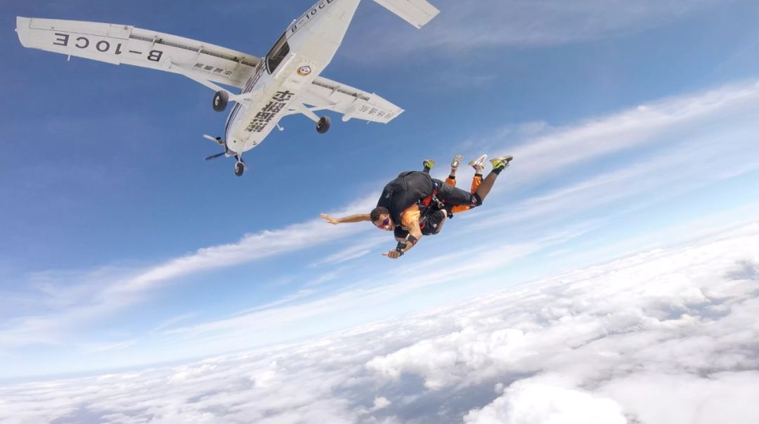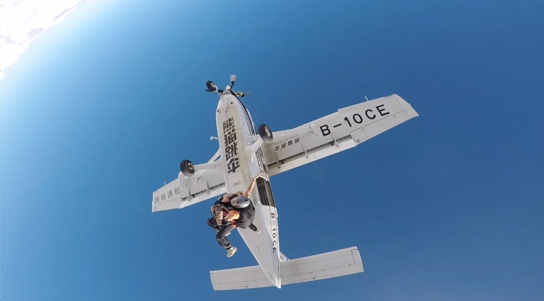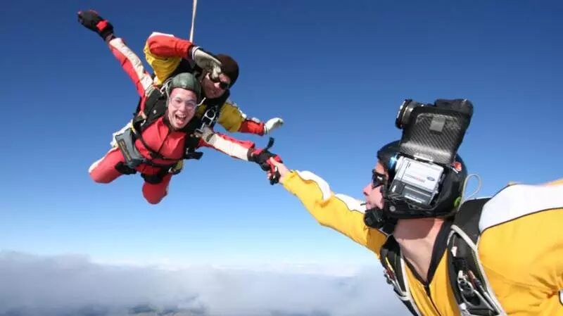 有一个秘密我现在就要说,那就是跳伞摄影师是用嘴来操纵相机的!