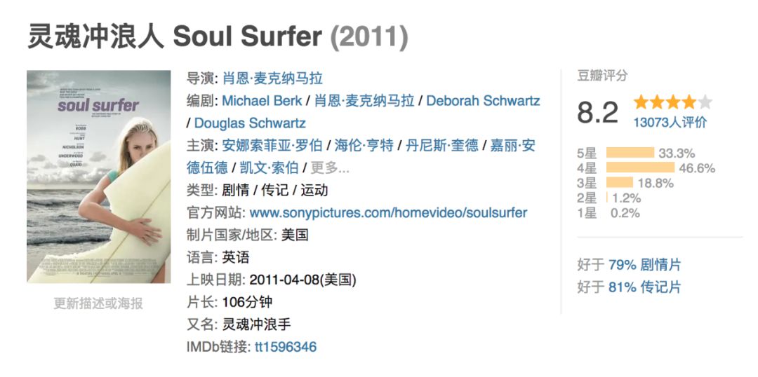 《灵魂冲浪人》| 豆瓣:8.2 IMDb:7.0