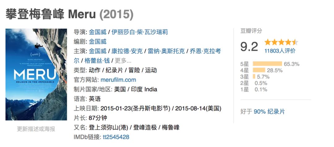《攀登梅鲁峰》| 豆瓣:9.2 IMDb:7.7