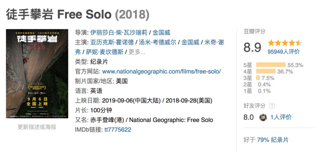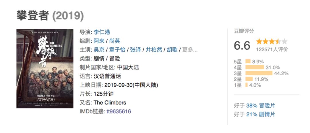 《攀登者》| 豆瓣:8.9 IMDb:5.3